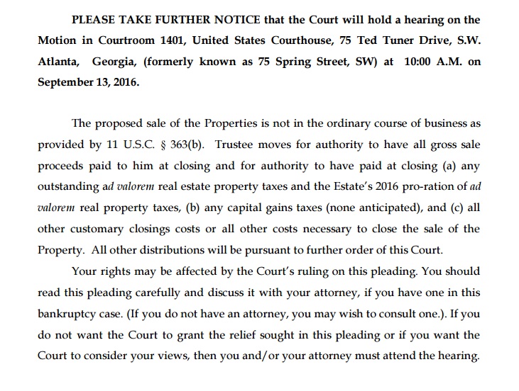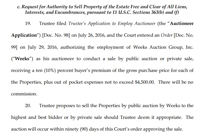 September 13 2016 Hearing- AUTHORITY TO SELL
