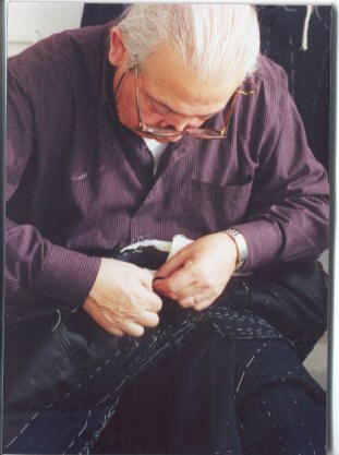 Our Quality ... The process begins with model selection, then ... Each order is individually hand cut with precise attention to measurements throughout the process. Customer measurements are saved for future orders, always providing a trusted fit. Special hand stitching creates a spring effect between the linen canvas and cloth, producing a roll that will distinguish this garment through years of use. The canvas construction defines the shape and feel of the garment. You may select from a medium canvas with selisia lapel piece or a lighter version with lightweight linen canvas. Special talents are needed to work the cloth to and give it the recognizable look only these clothes have. Sleeves as well as collars are hand set. Finally, hand finishing ... hand sewn linings ... buttons and button holes. Today, few people ever see clothes that are hand made to these standards. For that matter, talented tailors are becoming difficult to find. Our history in this business, coupled with the dedication of our tailors, allows us to produce a garment defined by centuries of fine tailoring.