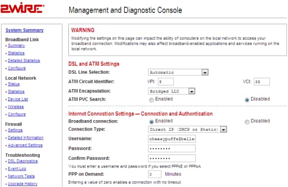 - Click Configure under the Broadband Link section.