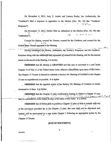 November 17 Hearing - December 14 2015 Order Conversion to Chapter 13