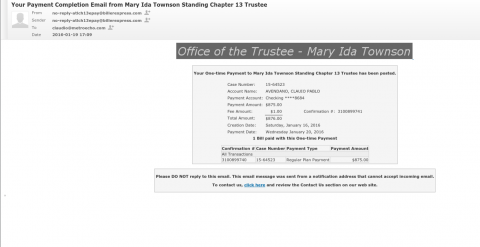 Jan 20 2016 Chapter 13 payment