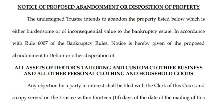October 20 2016 Trustee abandons business and everything on the property Doc 123 abandonment .pdf